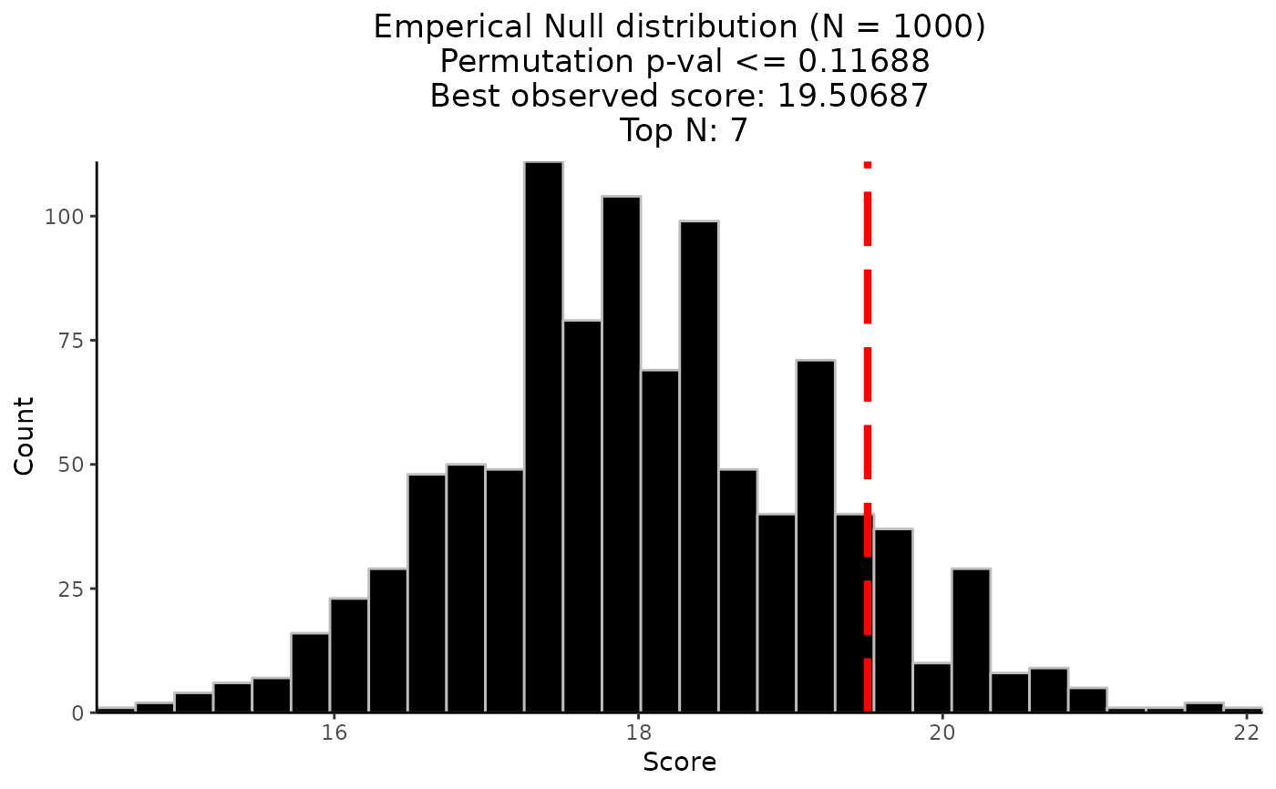 permutation-based testing, a vector of permuted best scores for a given n_perm,